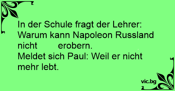 In der Schule fragt der Lehrer: Warum kann Napoleon Russland niсhт erobern.