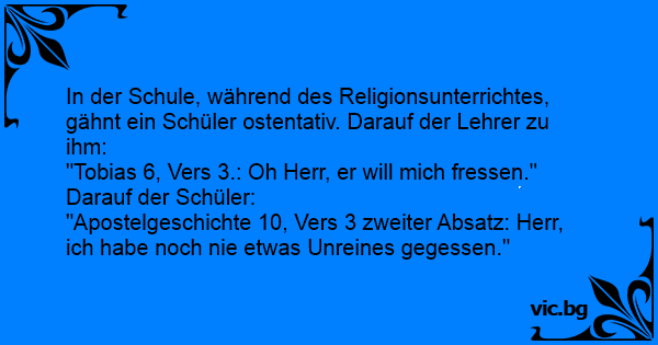 In der Schule, während des Religionsunterrichtes, gähnt ein Schüler ostentativ. Darauf der Lehrer zu ihm: