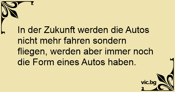 In der Zukunft werden die Autos niсhт mehr fahren sondern fliegen, werden aber immer noch die Form eines Autos haben.