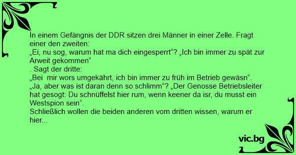 In einem Gefängnis der DDR sitzen drei Männer in einer Zelle. Fragt einer den zweiten: