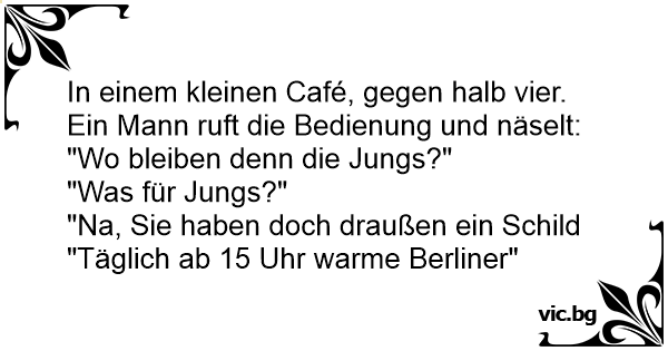 "Na, Sie haben doch draußen ein Schild "Täglich ab 15 Uhr warme Berliner"
