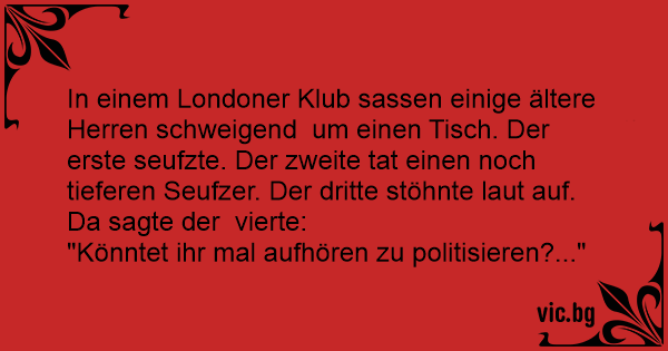 In einem Londoner Klub sassen einige ältere Herren schweigend um einen Tisch. Der erste seufzte. Der zweite tat einen noch tieferen Seufzer. Der dritte stöhnte laut auf. Da sagte der vierte: