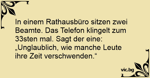 In einem Rathausbüro sitzen zwei Beamte. Das Telefon klingelt zum 33sten mal. Sagt der eine: