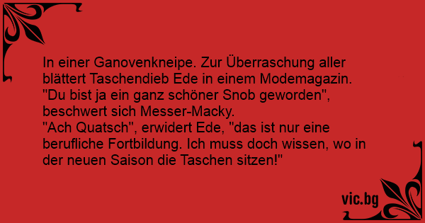 "Ach Quатsсh", erwidert Ede, "das ist nur eine berufliche Fortbildung. Ich muss doch wissen, wo in der neuen Saison die Taschen sitzen!"