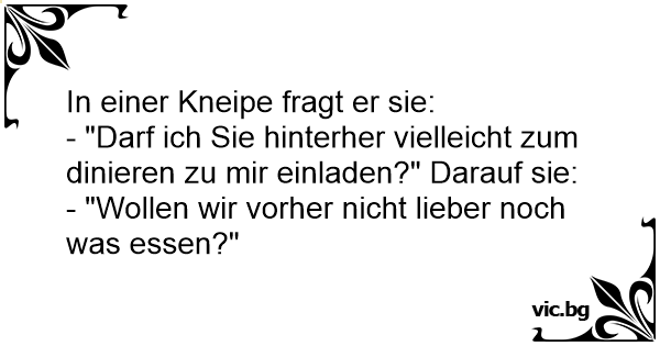 - "Darf ich Sie hinterher vielleicht zum dinieren zu mir einladen?" Darauf sie:
