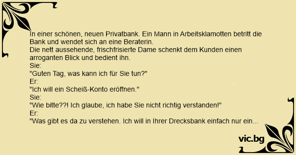 "Was gibt es da zu verstehen. Ich will in Ihrer Drecksbank einfach nur ein blödes Konto eröffnen."