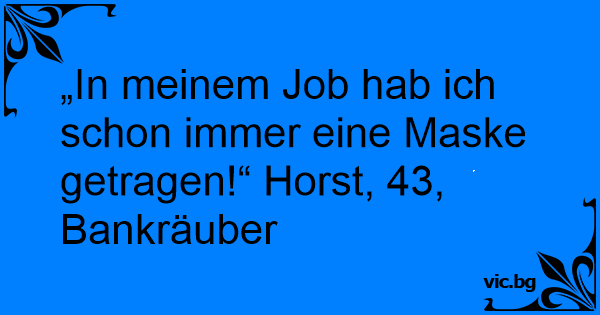„In meinem Job hab ich schon immer eine Maske getragen!“ Horst, 43, Bankräuber