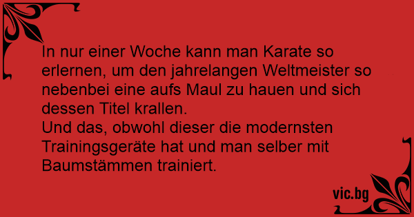 In nur einer Woche kann man Karate so erlernen, um den jahrelangen Weltmeister so nebenbei eine aufs Maul zu hauen und sich dessen Titel krallen.
