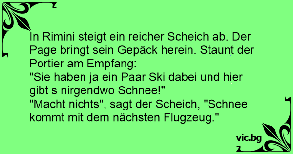 "Macht nichts", sagt der Scheich, "Schnee kommt mit dem nächsten Flugzeug."