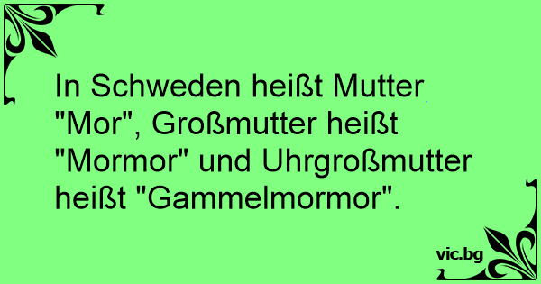In Schweden heißt Mutter "Mor", Großmutter heißt "Mormor" und Uhrgroßmutter heißt "Gammelmormor".