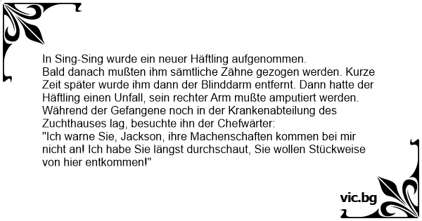 Während der Gefangene noch in der Krankenabteilung des Zuchthauses lag, besuchte ihn der Chefwärter: