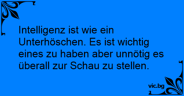 Intelligenz ist wie ein Unterhöschen. Es ist wichtig eines zu haben aber unnötig es überall zur Schau zu stellen.