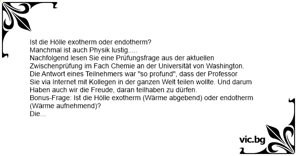 Bonus-Frage: Ist die Hölle exotherm (Wärme abgebend) oder endotherm