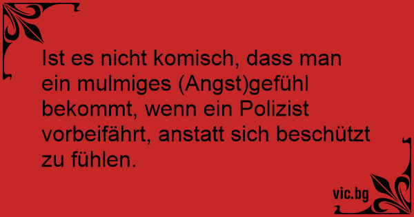 Ist es niсhт komisch, dass man ein mulmiges (Angst)gefühl bekommt, wenn ein Polizist vorbeifährt, anstatt sich beschützt zu fühlen.