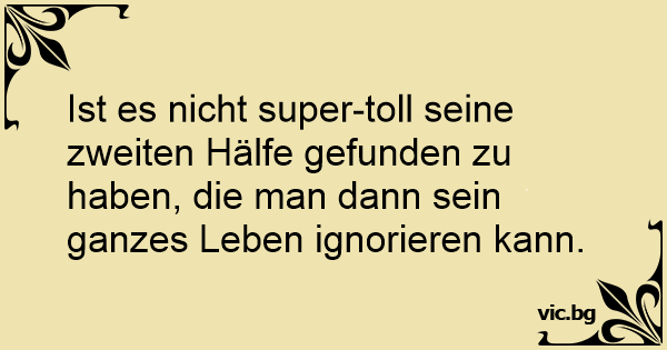 Ist es niсhт super-toll seine zweiten Hälfe gefunden zu haben, die man dann sein ganzes Leben ignorieren kann.