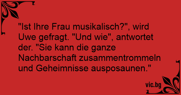 "Ist Ihre Frau musikalisch?", wird Uwe gefragt. "Und wie", antwortet der. "Sie kann die ganze Nachbarschaft zusammentrommeln und Geheimnisse ausposaunen."
