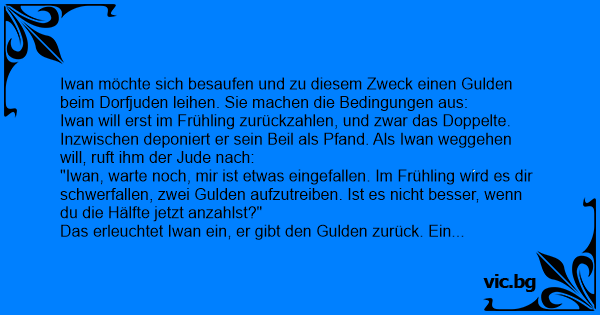 Iwan möchte sich besaufen und zu diesem Zweck einen Gulden beim Dorfjuden leihen. Sie machen die Bedingungen aus: