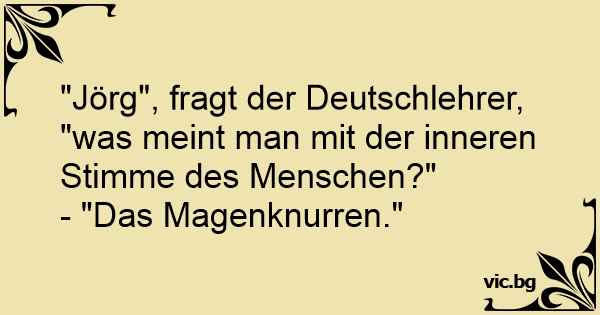"Jörg", fragt der Deutschlehrer, "was meint man mit der inneren Stimme des Menschen?"