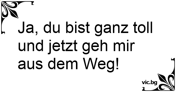 Ja, du bist ganz toll und jetzt geh mir aus dem Weg!