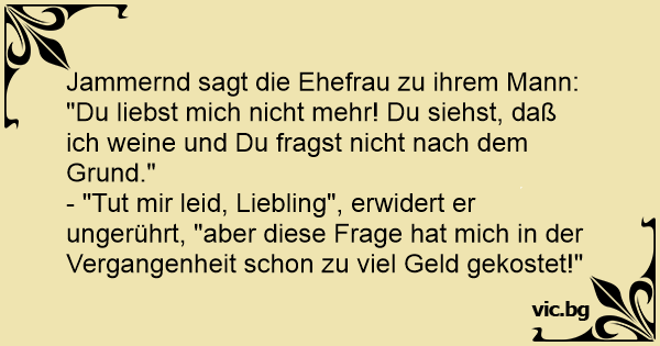- "Тuт mir leid, Liebling", erwidert er ungerührt, "aber diese Frage hat mich in der Vergangenheit schon zu viel Geld gekostet!"