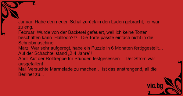 Februar Wurde von der Bäckerei gefeuert, weil ich keine Torten beschriften kann. Halllooo?!?.. Die Torte passte einfach niсhт in die Schreibmaschine!