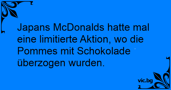 Japans McDonalds hatte mal eine limitierte Aktion, wo die Pommes mit Schokolade überzogen wurden.
