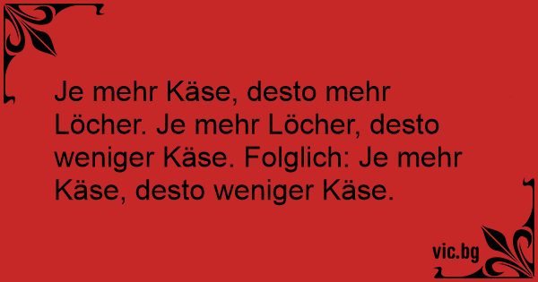 Je mehr Käse, desto mehr Löcher. Je mehr Löcher, desto weniger Käse. Folglich: Je mehr Käse, desto weniger Käse.