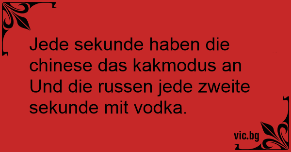 Jede sekunde haben die chinese das kakmodus an Und die russen jede zweite sekunde mit vоdка.