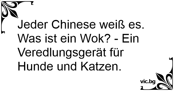 Jeder Chinese weiß es. Was ist ein Wok? - Ein Veredlungsgerät für Hunde und Katzen.