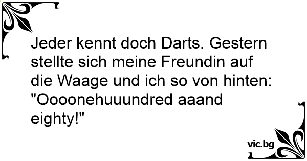 Jeder kennt doch Darts. Gestern stellte sich meine Freundin auf die Waage und ich so von hinten: