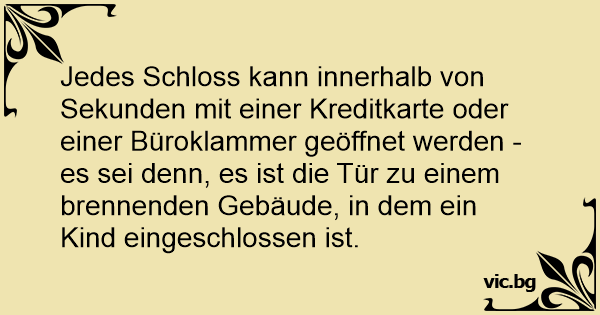 Jedes Schloss kann innerhalb von Sekunden mit einer Kreditkarte oder einer Büroklammer geöffnet werden - es sei denn, es ist die Tür zu einem brennenden Gebäude, in dem ein Kind eingeschlossen ist.