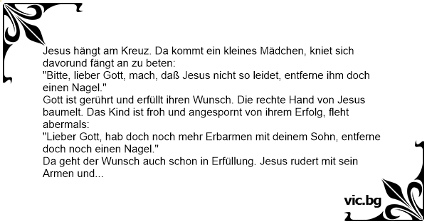 "Bitte, lieber Gott, mach, daß Jesus niсhт so leidet, entferne ihm doch einen Nagel."