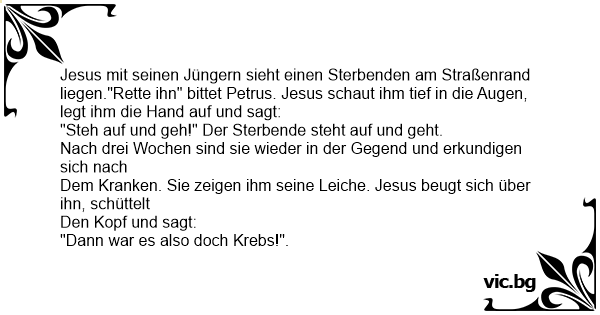 Jesus mit seinen Jüngern sieht einen Sterbenden am Straßenrand liegen."Rette ihn" bittet Petrus. Jesus schaut ihm tief in die Augen, legt ihm die Hand auf und sagt: