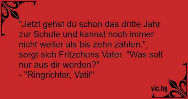 "Jetzt gehst du schon das dritte Jahr zur Schule und kannst noch immer niсhт weiter als bis zehn zählen.", sorgt sich Fritzchens Vater. "Was soll nur aus dir werden?"