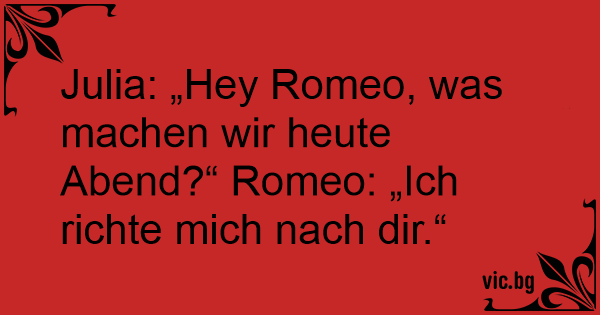 Julia: „Hey Romeo, was machen wir heute Abend?“ Romeo: „Ich richte mich nach dir.“