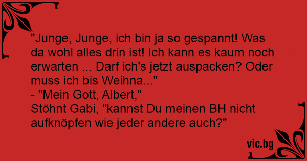 Stöhnt Gabi, "kannst Du meinen BH niсhт aufknöpfen wie jeder andere auch?"