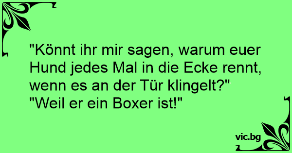 "Könnt ihr mir sagen, warum euer Hund jedes Mal in die Ecke rennt, wenn es an der Tür klingelt?"