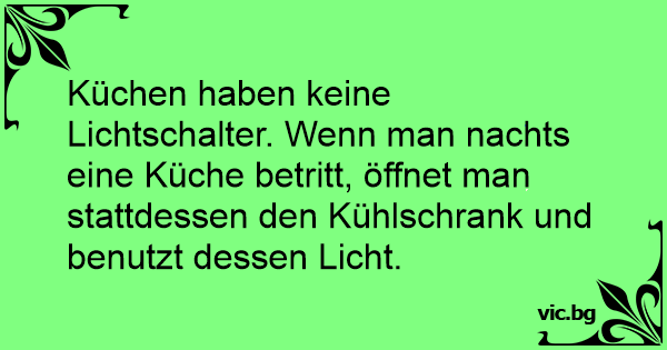 Küchen haben keine Lichtschalter. Wenn man nachts eine Küche betritt, öffnet man stattdessen den Kühlschrank und benutzt dessen Licht.