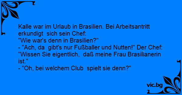 Kalle war im Urlaub in Brasilien. Bei Arbeitsantritt erkundigt sich sein Chef: