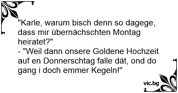 - "Weil dann onsere Goldene Hochzeit auf en Donnerschtag falle dät, ond do gang i doch emmer Kegeln!"
