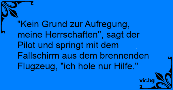 "Kein Grund zur Aufregung, meine Herrschaften", sagt der Pilot und springt mit dem Fallschirm aus dem brennenden Flugzeug, "ich hole nur Hilfe."