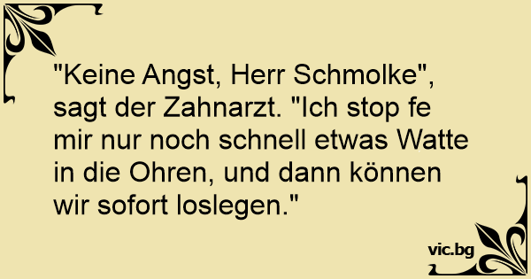 "Keine Angst, Herr Schmolke", sagt der Zahnarzt. "Ich stop fe mir nur noch schnell etwas Watte in die Ohren, und dann können wir sofort loslegen."