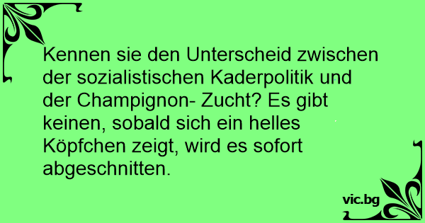 Kennen sie den Unterscheid zwischen der sozialistischen Kaderpolitik und der Champignon- Zucht? Es gibt keinen, sobald sich ein helles Köpfchen zeigt, wird es sofort abgeschnitten.