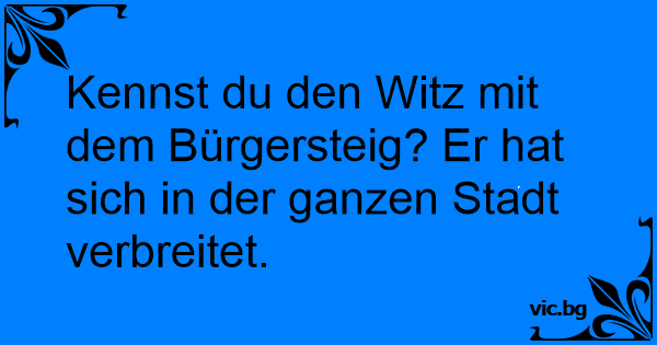 Kennst du den Witz mit dem Bürgersteig? Er hat sich in der ganzen Stadt verbreitet.