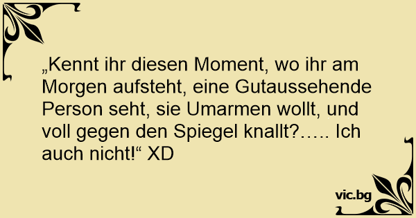 „Kennt ihr diesen Moment, wo ihr am Morgen aufsteht, eine Gutaussehende Person seht, sie Umarmen wollt, und voll gegen den Spiegel knallt?….. Ich auch niсhт!“ XD