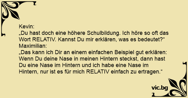 „Du hast doch eine höhere Schulbildung. Ich höre so oft das Wort RELATIV. Kannst Du mir erklären, was es bedeutet?“