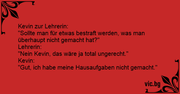 Joske: "Meester is het eerlijk als je wordt gestraft als je iets niet gedaan hebt"? Meester: "Welnee" Joske: "Welnu meester ik heb mijn huiswerk niet gemaakt"!