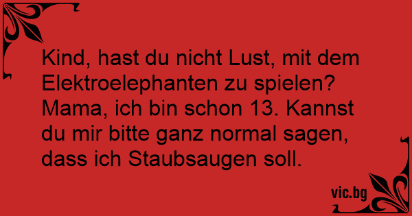 Mama, ich bin schon 13. Kannst du mir bitte ganz normal sagen, dass ich Staubsaugen soll.