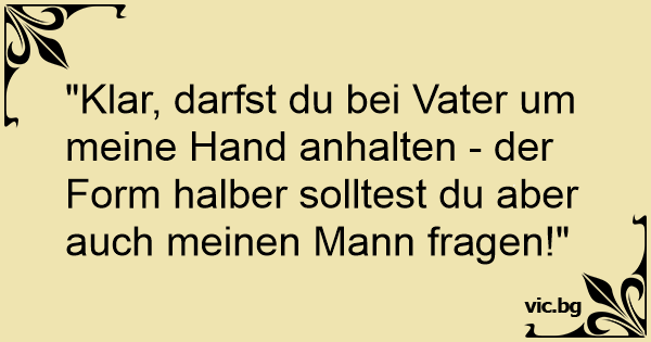 "Klar, darfst du bei Vater um meine Hand anhalten - der Form halber solltest du aber auch meinen Mann fragen!"