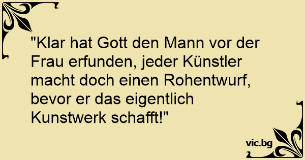 "Klar hat Gott den Mann vor der Frau erfunden, jeder Künstler macht doch einen Rohentwurf, bevor er das eigentlich Kunstwerk schafft!"